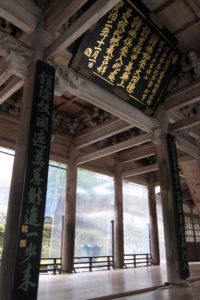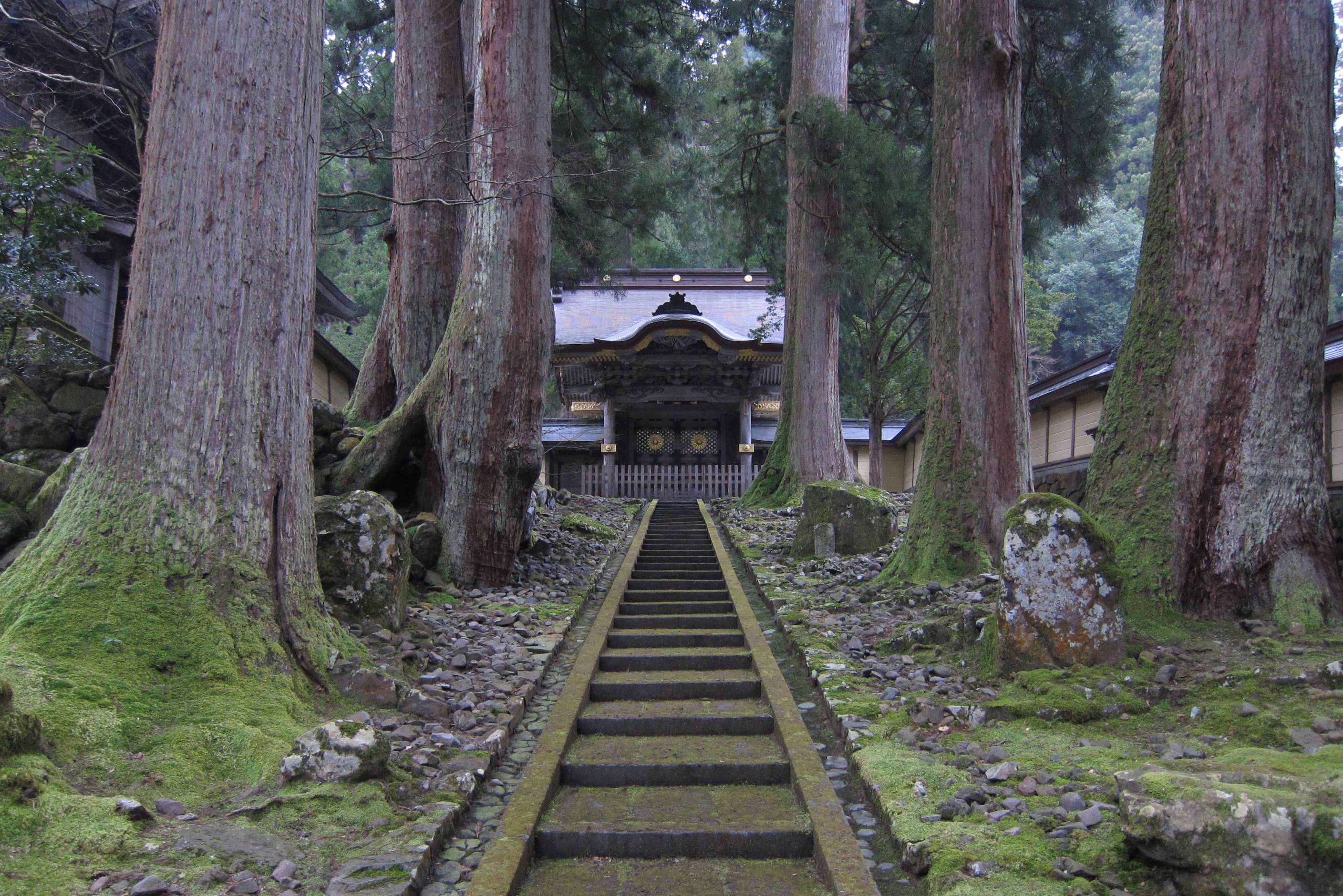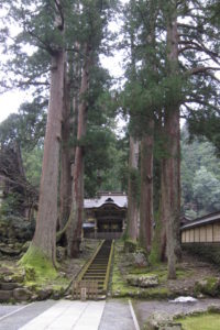 これが永平寺で一番有名な建築物といってもいい、勅使門です。すばらしいの一言。勅使門、階段、杉の巨木、すべてが揃ってこそのこの雰囲気です。